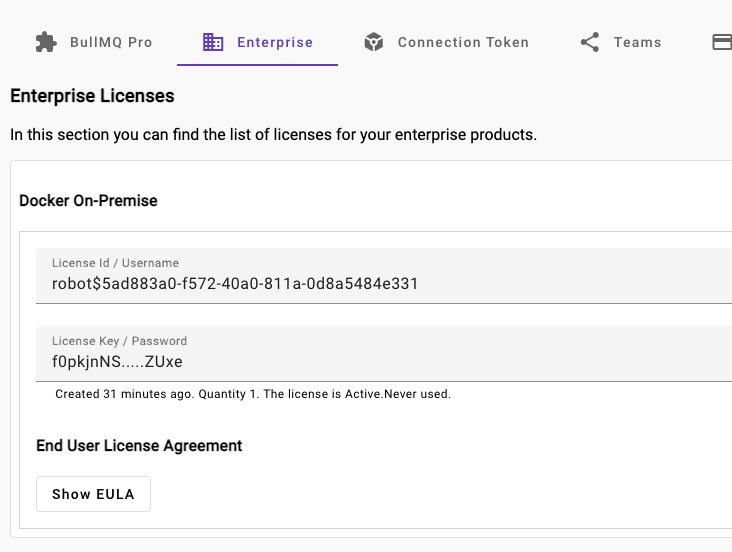 When you have a valid license, it will appear in the "Enterprise" section of your [account](https://taskforce.sh/account/enterprise).